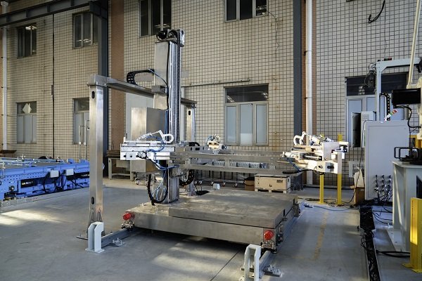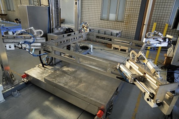 吨包撑袋机构是袋码垛过程中经常会用到的,它可以起到方便运输和防止倒包的作用。吨包撑袋机分为全自动和半自动,但论半自动还是全自动,底部都会配RGV,用以将码好的产品输送出来同时用来挂新的袋子。